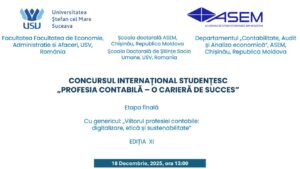 𝑈𝑛𝑖𝑣𝑒𝑟𝑠𝑖𝑡𝑎𝑡𝑒𝑎 𝑆̦𝑡𝑒𝑓𝑎𝑛 𝑐𝑒𝑙 𝑀𝑎𝑟𝑒 𝑑𝑖𝑛 𝑆𝑢𝑐𝑒𝑎𝑣𝑎, în colaborare cu 𝘈𝑐𝘢𝑑𝘦𝑚𝘪𝑎 𝑑𝘦 𝘚𝑡𝘶𝑑𝘪𝑖 𝐸𝘤𝑜𝘯𝑜𝘮𝑖𝘤𝑒 𝑑𝘪𝑛 𝑀𝘰𝑙𝘥𝑜𝘷𝑎, organizează cea de-a 10-a ediție a 𝐂𝐨𝐧𝐜𝐮𝐫𝐬𝐮𝐥𝐮𝐢 𝐈𝐧𝐭𝐞𝐫𝐧𝐚𝐭̦𝐢𝐨𝐧𝐚𝐥 𝐒𝐭𝐮𝐝𝐞𝐧𝐭̦𝐞𝐬𝐜 „𝐏𝐫𝐨𝐟𝐞𝐬𝐢𝐚 𝐜𝐨𝐧𝐭𝐚𝐛𝐢𝐥𝐚̆ – 𝐨 𝐜𝐚𝐫𝐢𝐞𝐫𝐚̆ 𝐝𝐞 𝐬𝐮𝐜𝐜𝐞𝐬”, sub genericul „𝘗𝑟𝘰𝑓𝘦𝑠𝘪𝑎 𝐶𝘰𝑛𝘵𝑎𝘣𝑖𝘭𝑎̆ 𝑖̂𝘯 𝘦𝑟𝘢 𝘱𝑟𝘰𝑣𝘰𝑐𝘢̆𝑟𝘪𝑙𝘰𝑟 𝑑𝘪𝑔𝘪𝑡𝘢𝑙𝘦”.